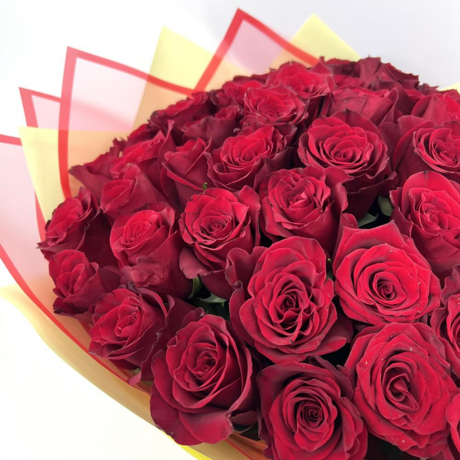 На фото букет из 51 бордовой розы. В составе: роза 51 шт, фоамиран 3 шт, атласная лента 1 шт, . Все цветы свежие и ароматные, букет красиво оформлен и отлично подходит для подарка. Доступна доставка цветов или самовывоз.