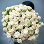 На фото букет из 25 белых кустовых роз. В составе: кустовая роза 25 шт, крафт-бумага 1 шт, атласная лента 1 шт, . Все цветы свежие и ароматные, букет красиво оформлен и отлично подходит для подарка. Доступна доставка цветов или самовывоз.