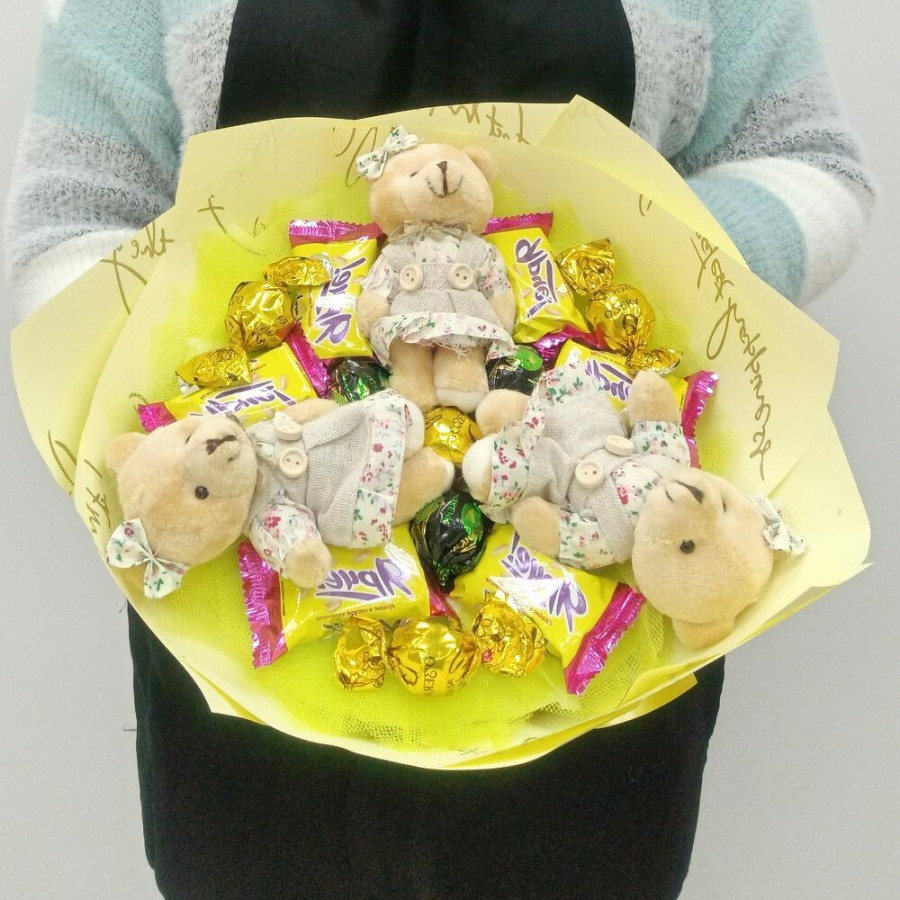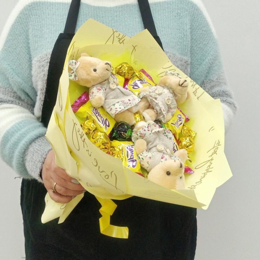 Букет из игрушек медвежат и конфет в Киселёвске