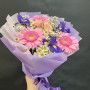 Букет из розовых гербер, ирисов и ромашек в Киселёвске