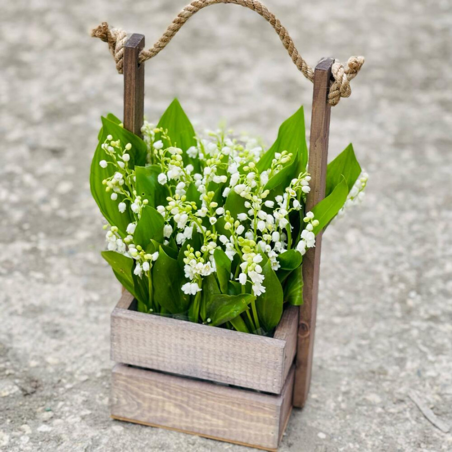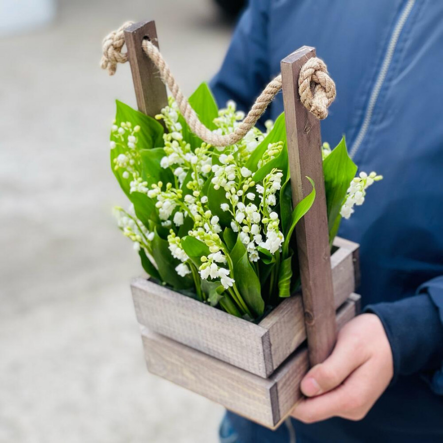 На фото ландыши в деревянном ящике. В составе: ландыш 15 шт, оазис флористический 1 шт, деревянный ящик (s) 1 шт, . Все цветы свежие и ароматные, букет красиво оформлен и отлично подходит для подарка. Доступна доставка цветов или самовывоз.